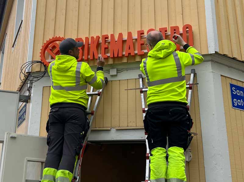 Skyltproduktion och montage för BikeMaestro på MunkebäcksgatanFår vi hjälpa dig med din nästa skyltning?